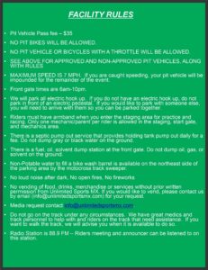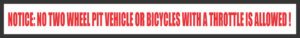 PIT VEHICLE                                     $35  (NO PIT BIKES OR BICYCLES WITH THROTTLES)